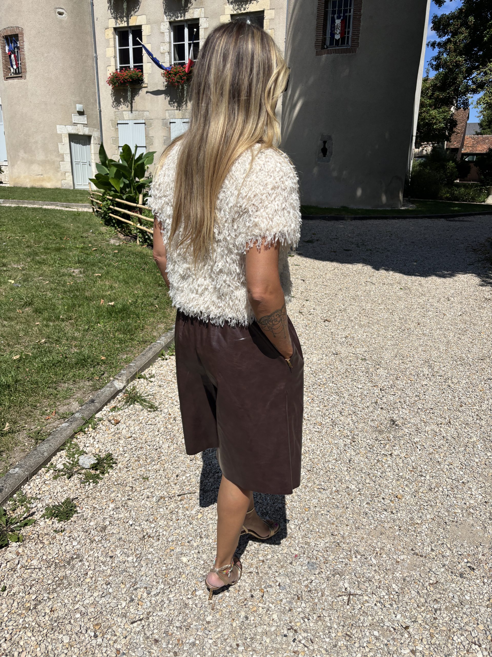 Ce bermuda en similicuir chocolat est la pièce incontournable de la saison. Sa coupe moderne et sa matière effet cuir apportent une touche chic et audacieuse à vos looks. Facile à associer, il se porte aussi bien avec des baskets pour un style casual qu’avec des talons pour un rendu sophistiqué.