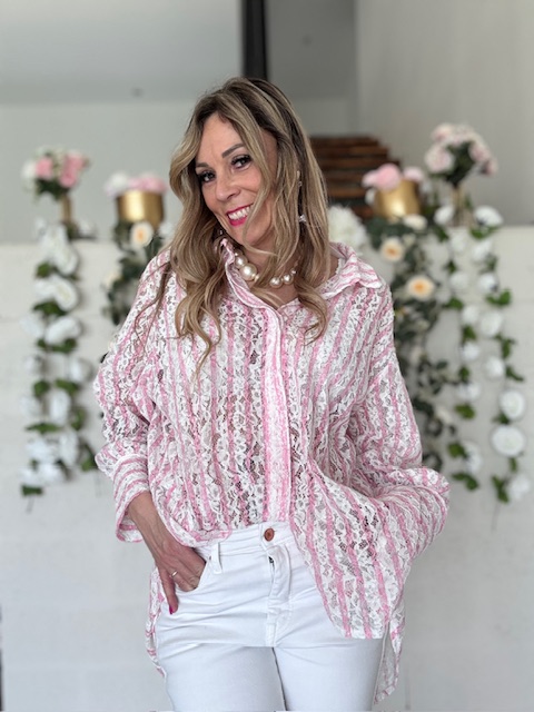 Une chemise rayée en dentelle pour un style résolument glamour et féminin. ✨