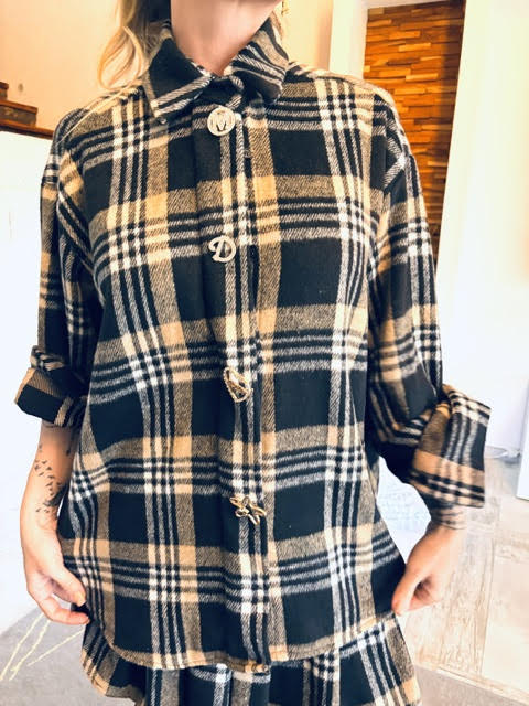 Chemise épaisse à carreaux avec boutons effet bijou
