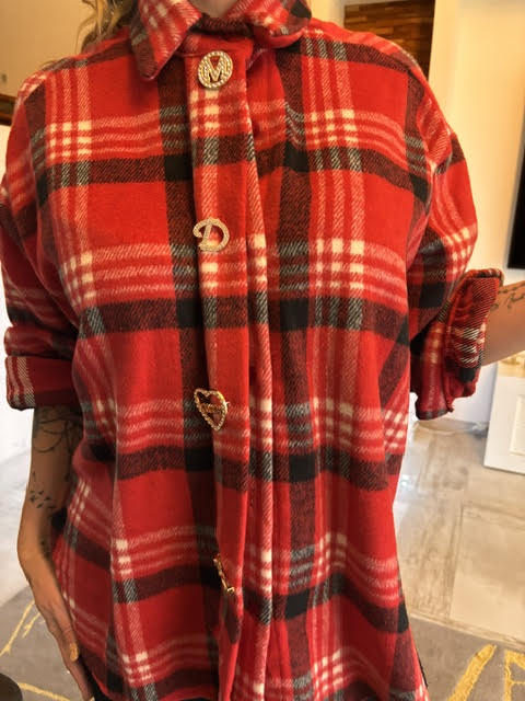 Chemise épaisse à carreaux avec boutons effet bijou