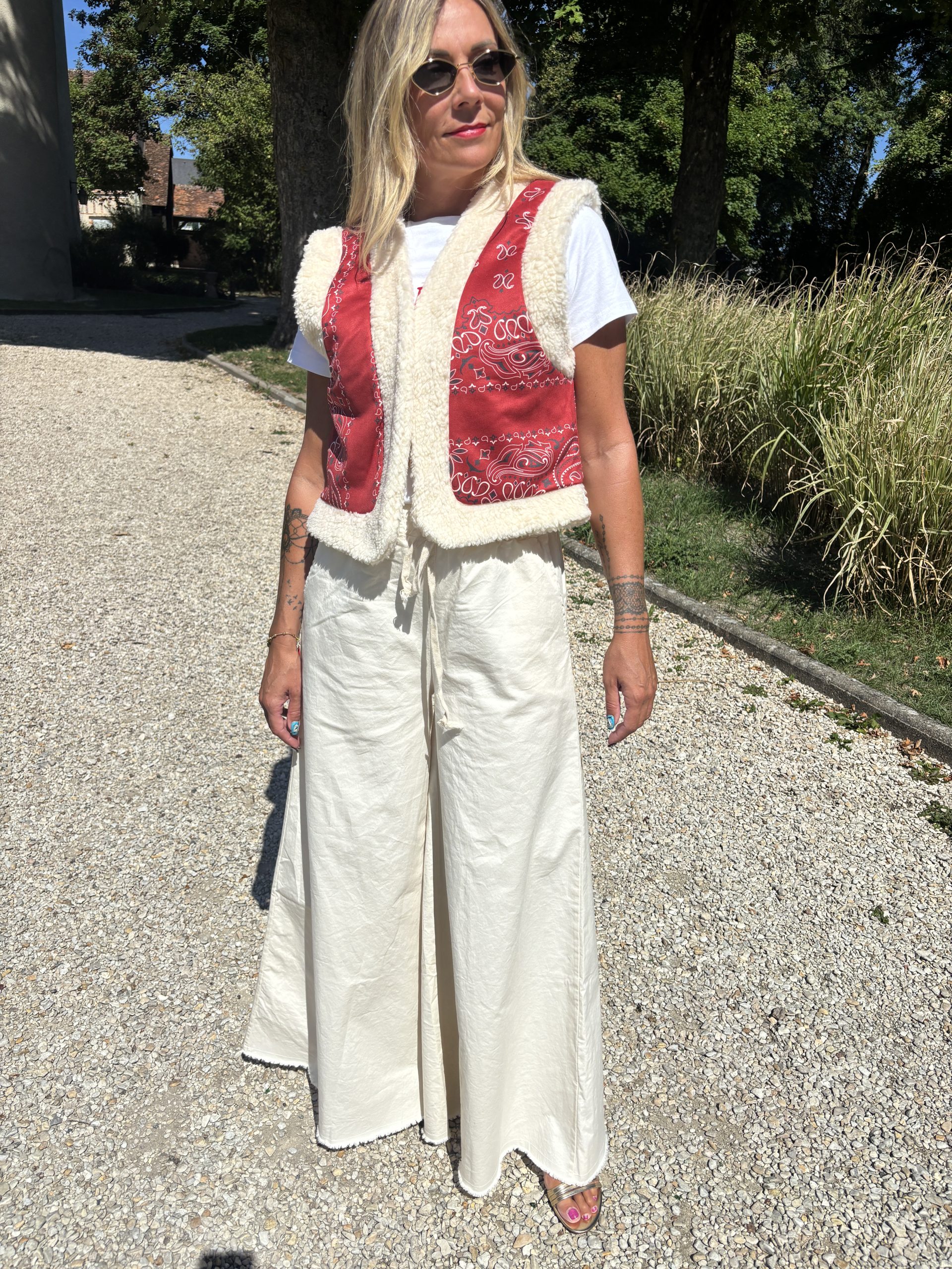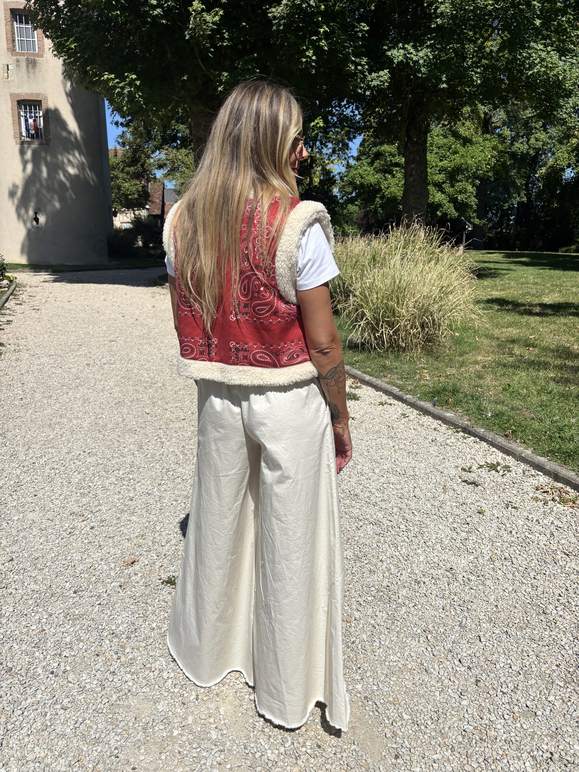 Optez pour un style chic et confortable avec le pantalon BENOS. Sa coupe large, confectionnée en coton doux et légèrement extensible grâce à l’élasthanne, offre une liberté de mouvement idéale tout en restant tendance. Sa jolie teinte beige, neutre et intemporelle, en fait une pièce facile à associer pour des looks aussi bien casual que sophistiqués.