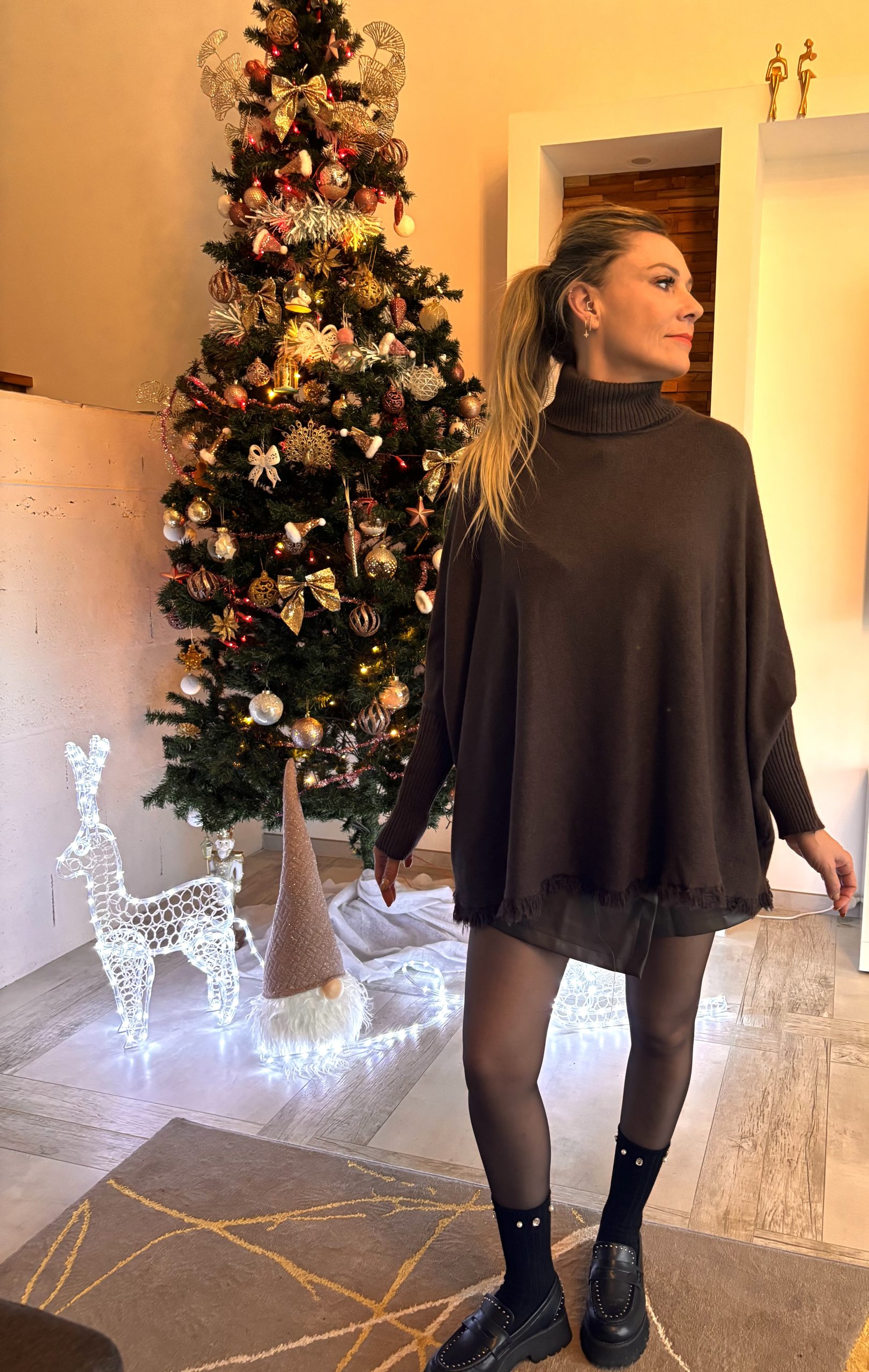 Ce pull col roulé allie confort et élégance avec une coupe ample et fluide qui s’adapte à toutes les occasions. Ses manches chauve-souris apportent une touche moderne, tandis que le bas légèrement évasé ajoute un mouvement gracieux à votre silhouette.