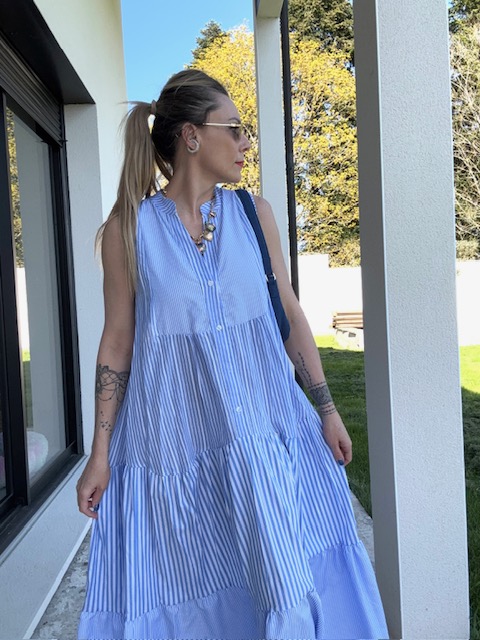 Robe Longue Marvy – Rayures Fraîches & Silhouette Légère 💙