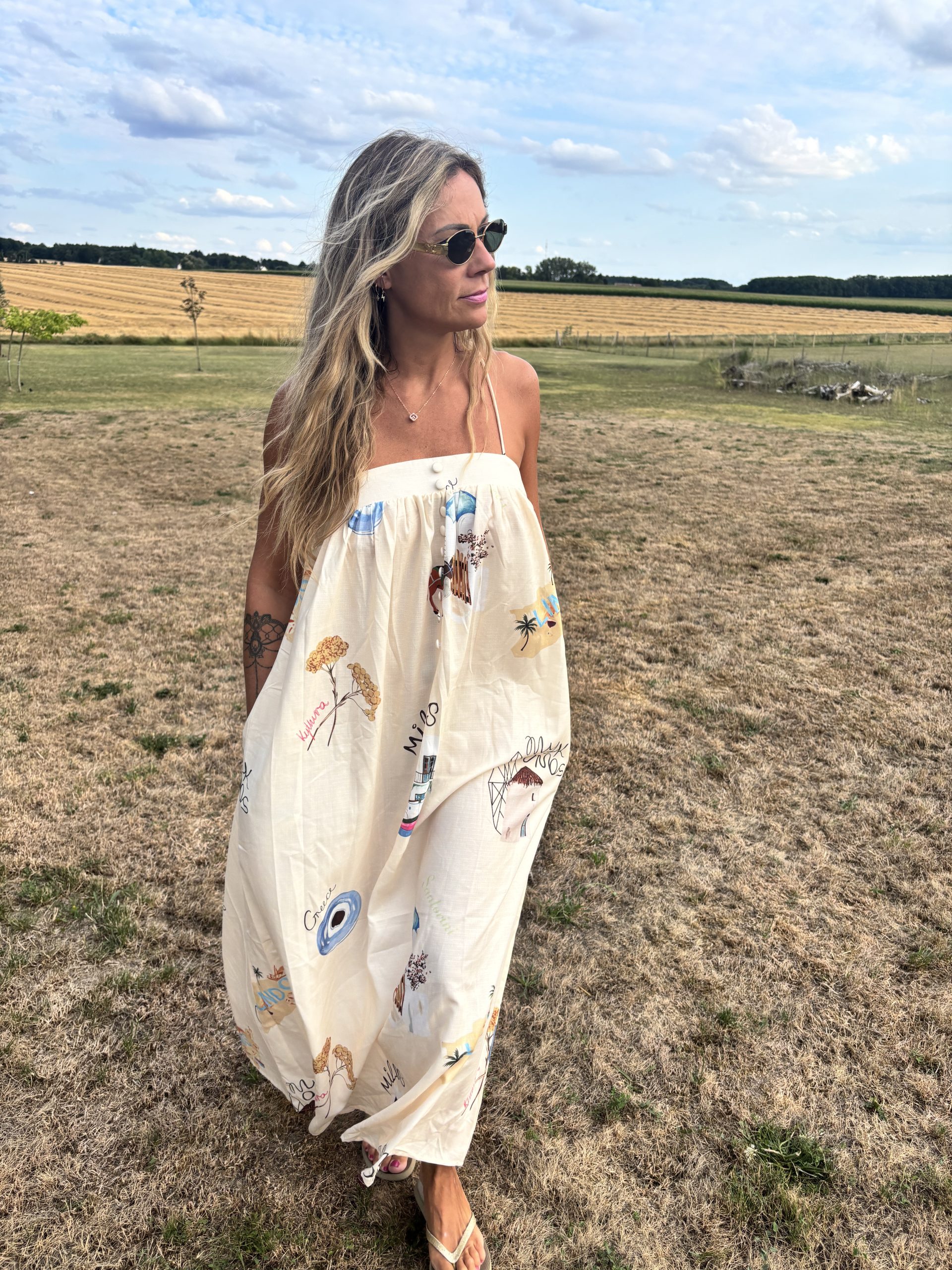Légère, colorée et résolument solaire, cette robe longue fluide est une invitation à l’évasion.